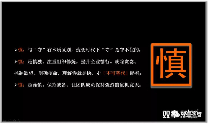 流變時(shí)代下,“守”是守不住的?!吧鳌?,對企業(yè)來(lái)說(shuō)是要認識到這個(gè)時(shí)代給我們帶來(lái)的巨變沖擊,并知道自己的不足和短板。所以,“慎”是保持謹慎、戒備和危機。