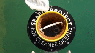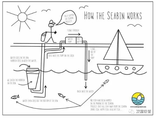 海洋里的垃圾就會(huì )被吸進(jìn)桶里的纖維袋內。