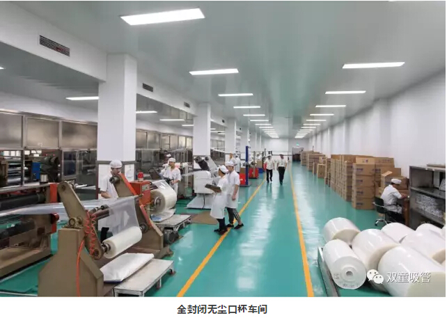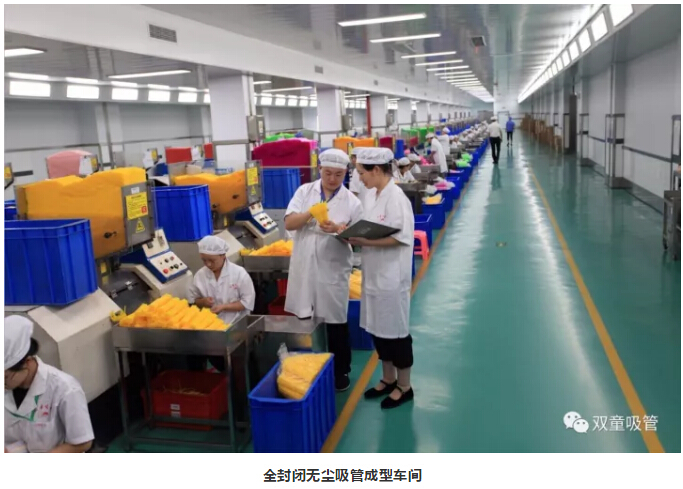 進(jìn)入車(chē)間內部,一列列整齊的機器、一箱箱五顏六色的吸管、一條條清晰分明的分界線(xiàn),車(chē)間內全部安裝了恒溫空調,所有員工皆穿著(zhù)潔白的工作服進(jìn)行生產(chǎn)工作。