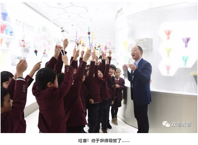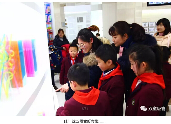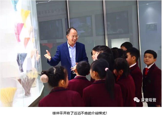 參觀(guān)結束后,“雙童”樓仲平也向孩子們說(shuō)道:再過(guò)一段時(shí)間,“雙童”將會(huì )推出可以“吃”的吸管,喝完飲料以后可以選擇將吸管“吃”下。聽(tīng)到這大家紛紛問(wèn)道:是不是巧克力味的......這根能“吃”的吸管讓孩子們十分激動(dòng)和期待呢!