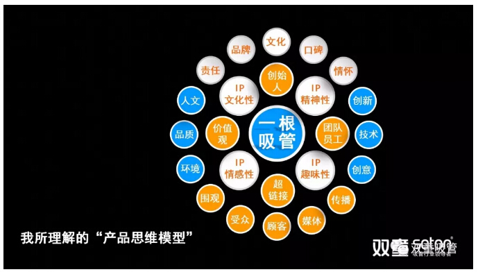 在這個(gè)模型中,吸管本身是一個(gè)產(chǎn)品,在產(chǎn)品本身內核不發(fā)生改變的情況下,產(chǎn)品之外的“品質(zhì)”、“信譽(yù)”、“品牌”、“文化”等屬性不斷地外延,并通過(guò)“創(chuàng )始人”、“團隊員工”、“價(jià)值觀(guān)”等又形成了產(chǎn)品的種種不同屬性。