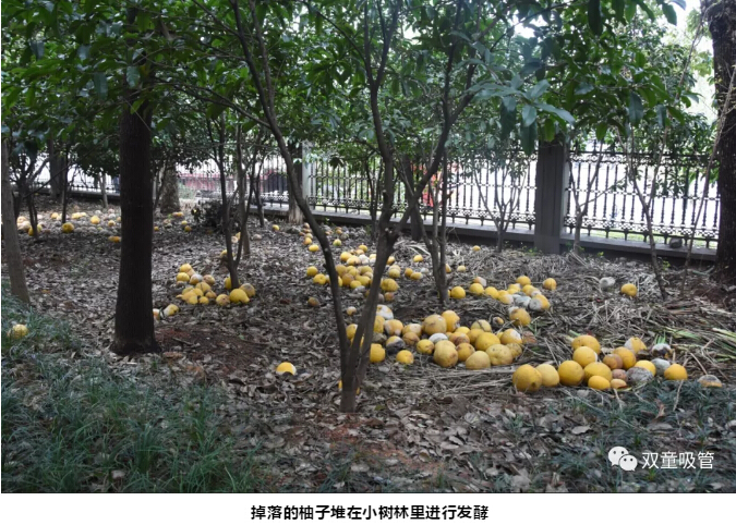原來(lái),“雙童”掉落后的柚子一部分會(huì )放入“雙童”生態(tài)小樹(shù)林中,柚子會(huì )進(jìn)行自然發(fā)酵成為樹(shù)木的天然養料。