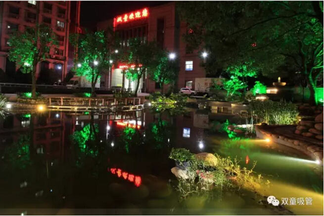 當夜幕降臨,走在鑲嵌在地面上的鵝卵石小徑上,掩映在綠樹(shù)成蔭下的路燈也是美麗極了!夜色初上,朦朦朧朧的淡淡燈光,與月色交相輝映,夜幕下的“雙童”也別有一番風(fēng)味!