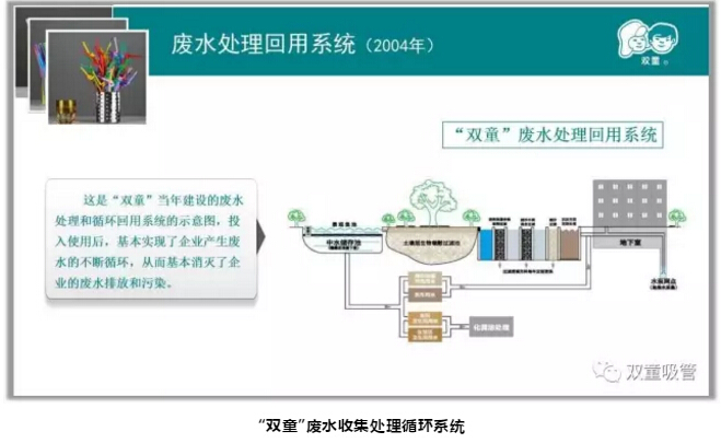 “雙童”廢水收集處理循環(huán)系統,就是將員工用的生活廢水過(guò)濾到“ 雙童一號樹(shù)”下進(jìn)行生物吸附處理,流入中水儲存池,并為廠(chǎng)區所有衛生間的馬桶沖水、綠化噴淋和道路清洗、車(chē)輛清洗所用,使公司的員工生活用水量節省了65%,每年為公司節省水費支出40多萬(wàn)元!