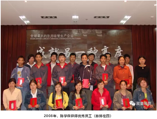 2008年2月,年滿(mǎn)25歲的河南小伙陳學(xué)森經(jīng)朋友介紹來(lái)到“雙童”,與“雙童”結緣。剛來(lái)的時(shí)候他在二車(chē)間從事理管的工作,由于工作細心認真,他在年底就獲得了優(yōu)秀員工的榮譽(yù)。