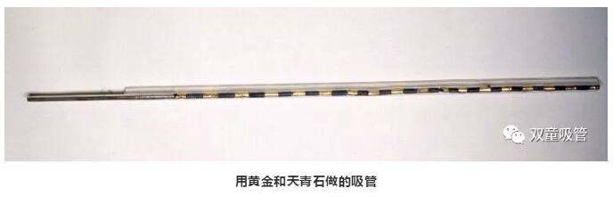 在現在的伊拉克南部,歷史學(xué)家們發(fā)現了亞述王朝初期的烏爾城王后普阿比的墓室中,她的黃金杯手柄就是吸管,她可以通過(guò)手柄來(lái)飲用杯子里的啤酒。同時(shí),歷史學(xué)家們還在墓室中發(fā)現了一根用黃金和天青石做的吸管。