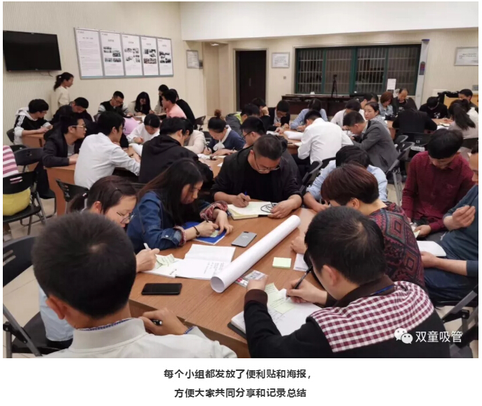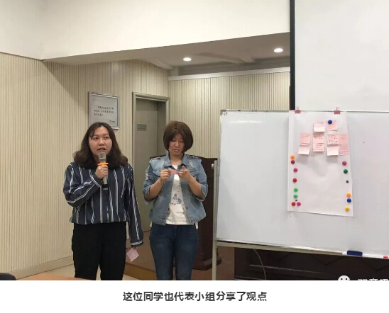 與此同時(shí),我們給每個(gè)小組都分發(fā)了便利貼和海報,讓每個(gè)小組成員將自己的觀(guān)點(diǎn)提煉記錄下來(lái),方便大家共同分享和記錄總結。