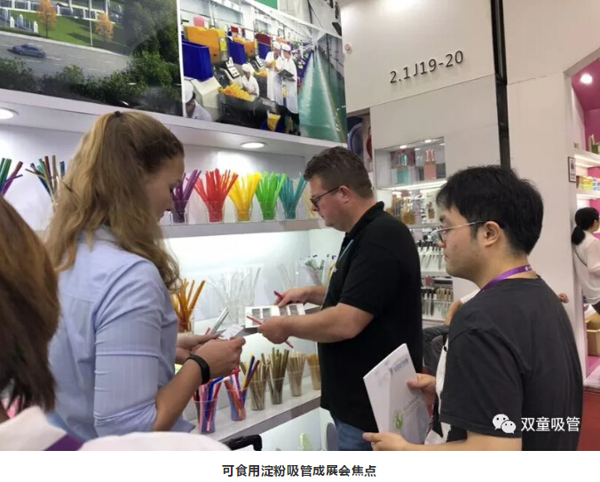 瞧!“雙童”展區展示著(zhù)各式各樣的可食用淀粉吸管,它們成為了此次展會(huì )的焦點(diǎn),大批新老客商駐足詢(xún)價(jià),現場(chǎng)真是擠爆啦!
