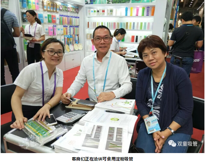 “雙童”可食用淀粉吸管首次上市就在廣交會(huì )上引爆啦,許多客商都慕名而來(lái)了解這根“神奇的吸管”!