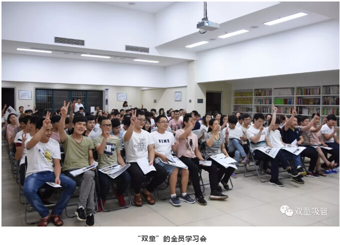 “雙童”,為了能夠在企業(yè)內部形成濃厚的學(xué)習氛圍和有效的學(xué)習機制,我們?yōu)閱T工制定了長(cháng)遠的學(xué)習規劃和目標。首先,在“雙童”每個(gè)月都要舉辦全體員工的學(xué)習會(huì ),確保所有員工每月有累計八小時(shí)的學(xué)習和培訓。無(wú)論是掃地阿姨還是看門(mén)叔叔,都必須參加全員學(xué)習會(huì ),以提高自身認知水平!