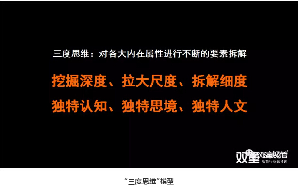 產(chǎn)品要轉化成商品就需要讓產(chǎn)品擁有精神屬性、文化屬性等,因此,“雙童”通過(guò)“三度思維”對各大內在屬性進(jìn)行不斷的要素拆解。