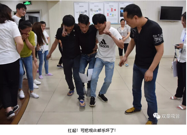 吃飽喝足之后,就是激動(dòng)人心的游戲環(huán)節啦!最精彩的就是夾紙跑游戲,要求三個(gè)人用腿部夾送兩張紙完成游戲。腦洞大開(kāi)的壽星們想出了把中間的人扛起來(lái)的辦法。給壽星們機智鼓掌!