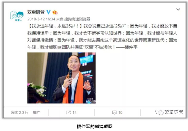 所以,樓仲平一直堅持向年輕人學(xué)習,創(chuàng )建與年輕人對話(huà)和溝通的能力,永遠將自己定位在25歲,緊追時(shí)代步伐,不讓自己成為時(shí)代的“棄兒”!