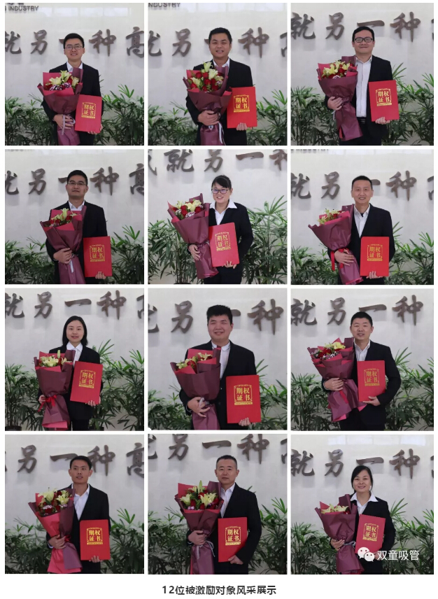 而在2018年的12月19日,在“雙童”第一期股權激勵啟動(dòng)大會(huì )上,“雙童”首批12位核心員工正式簽約成為“雙童”的經(jīng)營(yíng)伙伴,我們以股份合伙、業(yè)務(wù)合伙等“合伙激勵”的 方式讓優(yōu)秀人才變?yōu)楹匣锶?,讓員工和組織的目標長(cháng)遠契合、共同生長(cháng)、共享價(jià)值創(chuàng )造的有效延伸!