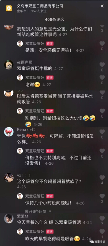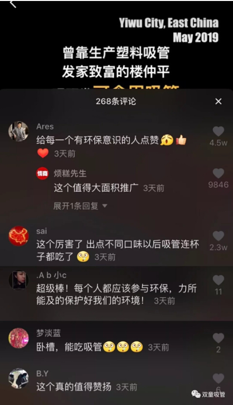 5月以來(lái),吸管妞也在抖音發(fā)布了關(guān)于“雙童”可食用淀粉吸管的視頻,獲得了百萬(wàn)閱讀和上萬(wàn)點(diǎn)贊,也在抖音上引起了激烈的討論,可謂一管激起千層浪!一起來(lái)看看吧!