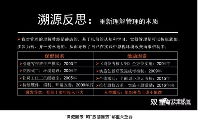 “雙童”樓仲平也曾在學(xué)習會(huì )上談到,員工與組織的關(guān)系就是一種彼此交換、彼此協(xié)作、彼此默契、彼此期望的雇傭關(guān)系,所以本質(zhì)上就無(wú)法像對待“家人”一樣對待員工,否則就會(huì )出現雙方彼此期待的背離,從而給雙方帶來(lái)傷害。
