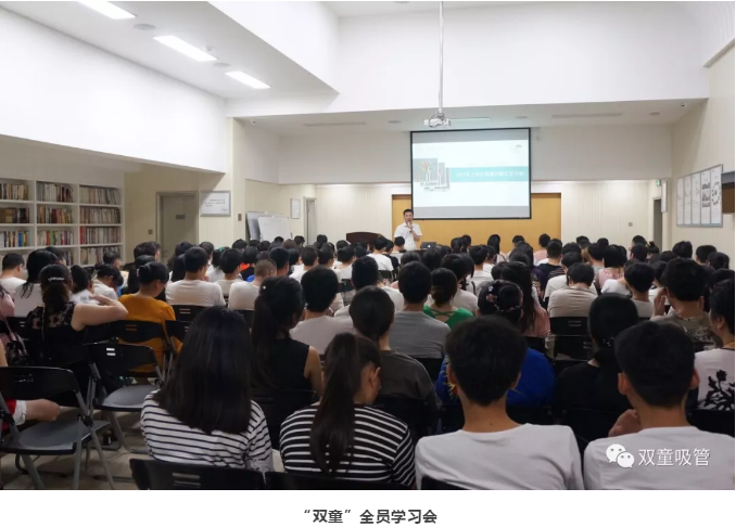 “雙童”尊重員工的學(xué)習需求,建立覆蓋全員的學(xué)習會(huì )制度,將員工文化學(xué)習與職業(yè)升遷掛鉤,將學(xué)習成績(jì)列入員工長(cháng)期職業(yè)發(fā)展當中。每周雷打不動(dòng)都有兩期全員學(xué)習大會(huì ),各部門(mén)還有小課,即使是保潔阿姨、門(mén)衛,每周都要求學(xué)滿(mǎn)10小時(shí)。
