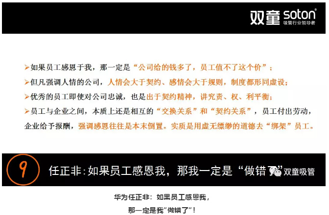 “雙童”樓仲平在課程分享時(shí)曾說(shuō)道:“許多人無(wú)法理解華為,但企業(yè)是以產(chǎn)出效益為追求使命的,如果你一天到晚講人情,講情懷,講感恩......把這些放到企業(yè)當中,一定會(huì )出問(wèn)題的?!?/span>