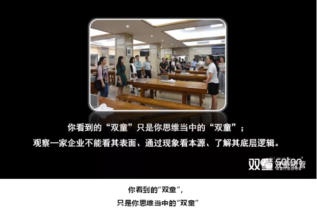 樓仲平以“雙童”為例:很多人來(lái)“雙童”參觀(guān)都覺(jué)得“雙童”的硬件很好,但是我做的第一件事就是“破界”,你看到的“雙童”只是你思維當中的“雙童”,要了解‘雙童’為什么會(huì )這么做,企業(yè)這樣做的底層邏輯在哪里,一味照搬仿制是沒(méi)有意義的!