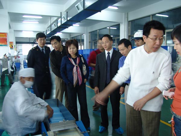 2007年10月24日義烏市檢驗檢疫局龔科協(xié)同國家認證認可監督管理局金立萍副主任、國家質(zhì)量監督檢驗檢疫總局徐麗艷副處長(cháng)一行7人考察我公司。