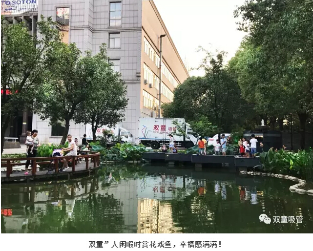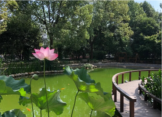 景觀(guān)湖上荷花綻放,景觀(guān)湖下暗藏中水儲存池。在這個(gè)荷花盛開(kāi)的季節,每位員工都可以體驗到“一步一景”的美妙,感覺(jué)到美好環(huán)境帶來(lái)的愉悅,真是妙哉!