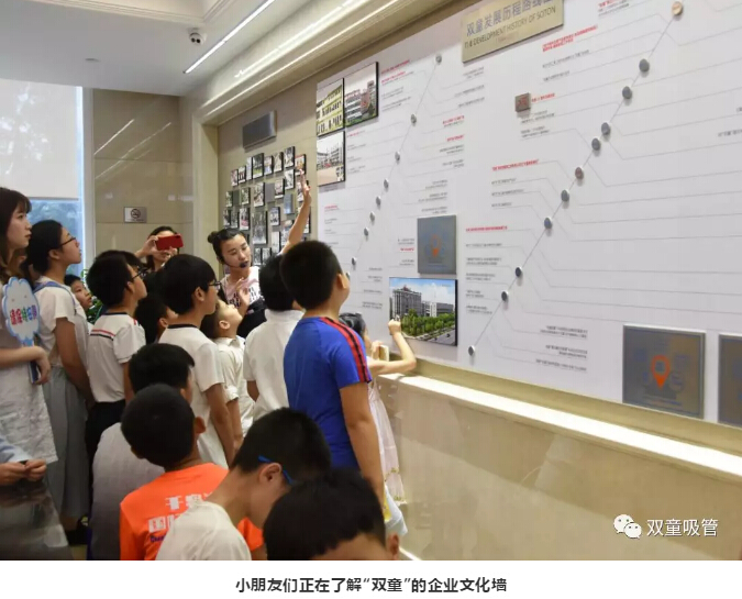 參觀(guān)完博物館后,大家接著(zhù)參觀(guān)了“雙童”員工餐廳和企業(yè)文化墻。小朋友們一如既往地緊跟吸管妹妹身后,深怕自己錯過(guò)什么“秘密”。