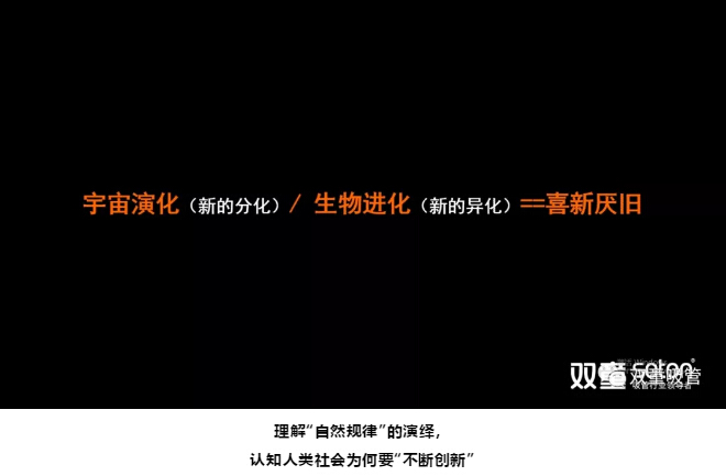 樓仲平繼續分享道:要真正認知“創(chuàng )新”,首先要多去學(xué)習那些看似“無(wú)用”的知識,運用天文學(xué)、生物學(xué)、物理學(xué)的宏觀(guān)角度,理解在“自然規律”的演繹和進(jìn)化,再通過(guò)逐級推理的方式去認知人類(lèi)社會(huì )為什么要“不斷創(chuàng )新”。