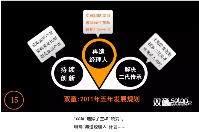 通過(guò)“雙童”的“蛻變”過(guò)程,通過(guò)“再造經(jīng)理人”計劃,優(yōu)化了團隊結構,激發(fā)了團隊活力和創(chuàng )新意識。同時(shí),也引領(lǐng)企業(yè)走向下一個(gè)全新的發(fā)展征程。