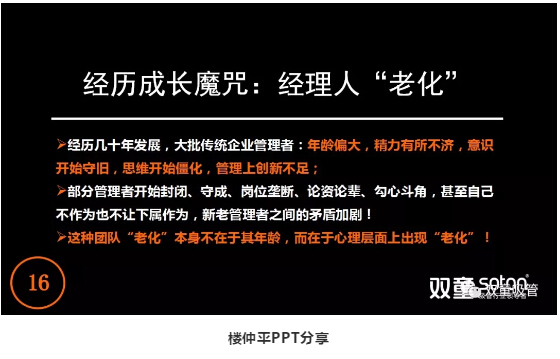 在公司創(chuàng )辦初期聘用的一批管理層,在2010年前后,大部分管理人員逐漸出現:依托于慣性思維,憑經(jīng)驗用老方法解決新問(wèn)題,不愿意學(xué)習等問(wèn)題,團隊的成長(cháng)也因此遇到了瓶頸。