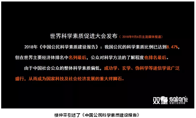 首先,樓仲平首先引述了2018年《中國公民科學(xué)素質(zhì)建設報告》,讓大家了解到目前中國公眾對科學(xué)認知所處的階段: