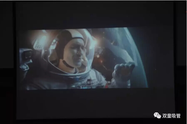 在現場(chǎng),吸管妞為壽星及影迷們放映了由黃渤與沈騰主演的電影《瘋狂外星人》。瞧!“雙童”人都把“雙童影院”給承包啦!