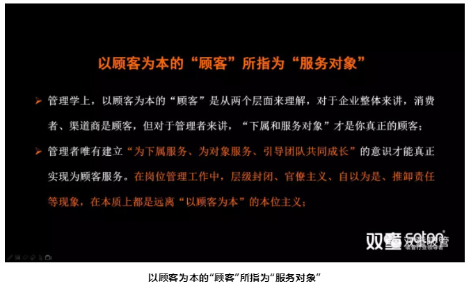 為何說(shuō)所有管理者都是為一線(xiàn)員工而服務(wù)?其實(shí),在大多數員工的眼中:自己作為下屬,應該討好和巴結領(lǐng)導才對!但實(shí)際上,員工才是管理者應該討好和巴結的對象,因為員工是在創(chuàng )造價(jià)值,而管理者只不過(guò)是提供了管理上的服務(wù)而已!樓仲平也一再引導員工轉變以上觀(guān)念,因為“以顧客為本”的“顧客”所指為“服務(wù)對象”。對于管理者來(lái)講,“下屬和服務(wù)對象”才是真正的顧客,一線(xiàn)員工才是真正的顧客。給你發(fā)工資的不是老板,而是你的下屬,你的服務(wù)對象,是我們的“一線(xiàn)員工”在給管理者發(fā)工資!