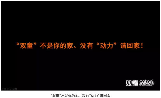 緊接著(zhù),樓仲平提出了“‘雙童’不是你的家,沒(méi)有‘動(dòng)力’請回家!”的觀(guān)點(diǎn),引出第二個(gè)主題——“以?shī)^斗者為本”的價(jià)值觀(guān)。