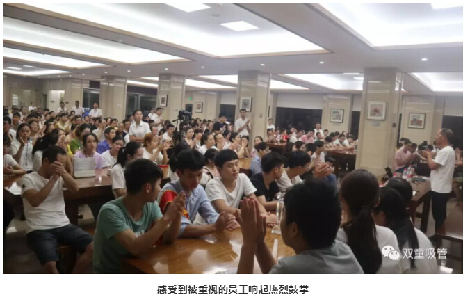 8月16日開(kāi)始,“雙童”持續推動(dòng)企業(yè)重大改革,強烈喚醒了員工們的危機意識!8月20日晚,"雙童"停下所有生產(chǎn)線(xiàn)機器設備,緊急召開(kāi)員工大會(huì )!原來(lái),此次員工大會(huì )以改革為主題,將改革工作深入到所有員工,讓每一位員工得以理解和轉變!