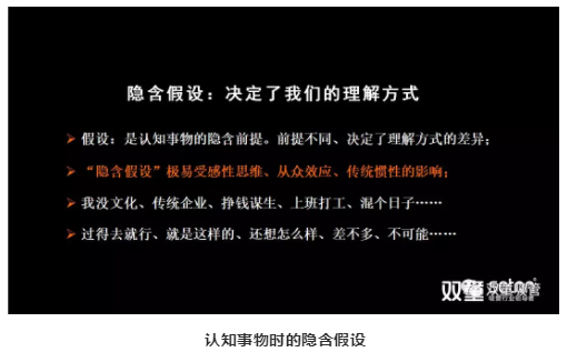 緊接著(zhù),樓仲平引導大家突破思維遮蔽,打破隱含假設!