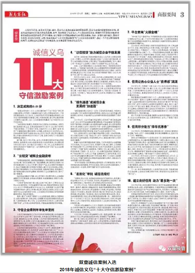 “雙童”也是如此,在經(jīng)營(yíng)過(guò)程中,對社會(huì )、對政府、對員工誠信、樹(shù)立誠信并傳播誠信,推動(dòng)企業(yè)在良好的法治環(huán)境下,誠信經(jīng)營(yíng),健康發(fā)展!