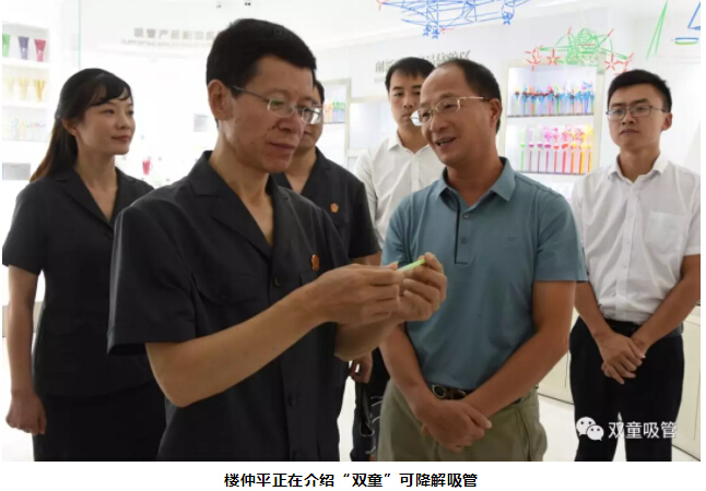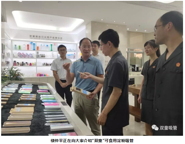 胡公益院長(cháng)聽(tīng)完介紹后,對這款綠色環(huán)保的可食用淀粉吸管稱(chēng)贊連連。