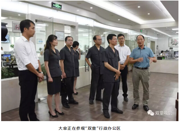 參觀(guān)完中國吸管博物館之后,義烏法院黨組書(shū)記、代院長(cháng)胡公益一行人在樓仲平的帶領(lǐng)下參觀(guān)“雙童”公開(kāi)、透明的行政辦公區。