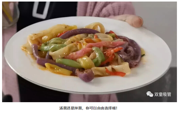而且,吸管妞還要給大家送上一個(gè)大大的suprise!那就是我們的這款新產(chǎn)品還可以煮成面條哦,而且味道還杠杠滴!