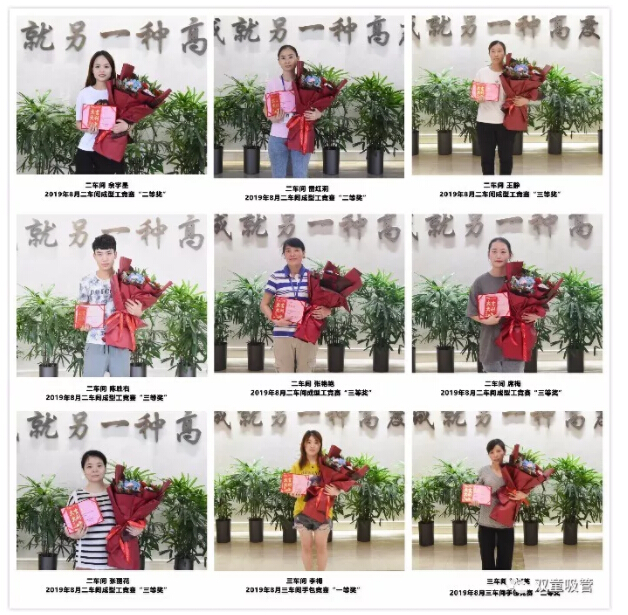2019年8月二車(chē)間成型工競賽一等獎:陳依二等獎:余宇星、雷紅莉.三等獎:王 靜、陳勝右、張艷艷、席梅、張麗花