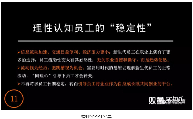 看到這里,很多老板或許認為離職率高因為現在的95后員工浮躁、不穩定,可事實(shí)真的是這樣嗎?管理者又該如何面對和管理呢?一起來(lái)看看樓仲平是怎么說(shuō)的吧!