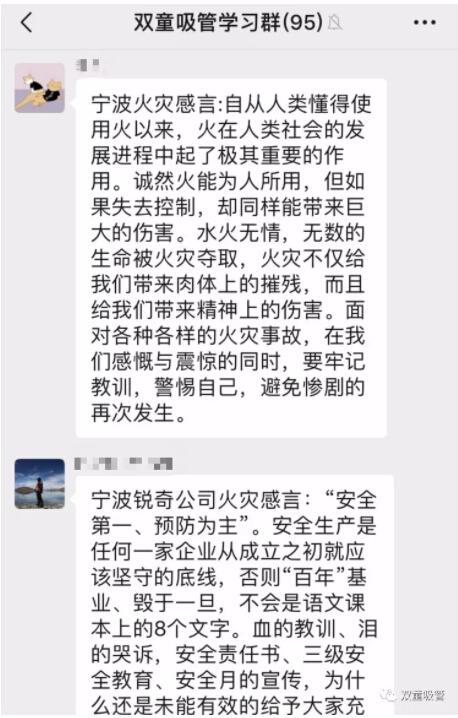 與此同時(shí),針對此次寧波火災的重大事件,“雙童”人也結合企業(yè)內部的安全工作寫(xiě)下了安全感言,從而形成安全生產(chǎn)的高壓線(xiàn)!