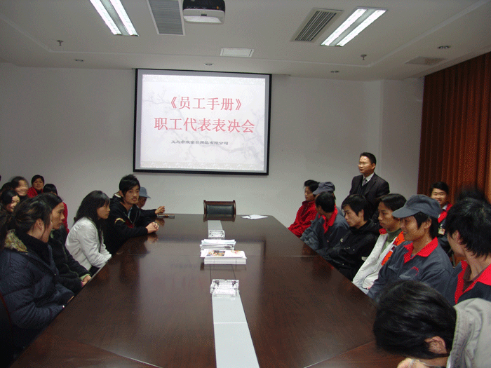 2008年1月3日雙童公司工會(huì )組織工會(huì )代表和職工代表(76人)針對公司08年《員工手冊》的修訂頒布進(jìn)行討論表決,實(shí)際到會(huì )68人,經(jīng)過(guò)半天時(shí)間逐條逐句的討論,《員工手冊》各項條款最后一致得以通過(guò),會(huì )議最后決定在1月5日正式發(fā)布執行。