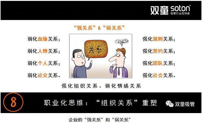 這樣的一種弱關(guān)系原則可以讓管理者將大部分的精力專(zhuān)注于企業(yè)內部的管理,專(zhuān)注于事務(wù)解決,從而建立起一套健康發(fā)展的管理邏輯。