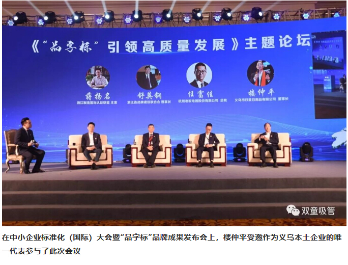 作為義烏第一家制訂“浙江制造”標準的企業(yè),“雙童”樓仲平及李二橋也多次受邀在標準化會(huì )議上分享“雙童”標準制訂之路,成為義烏“浙江制造”標準代言人。