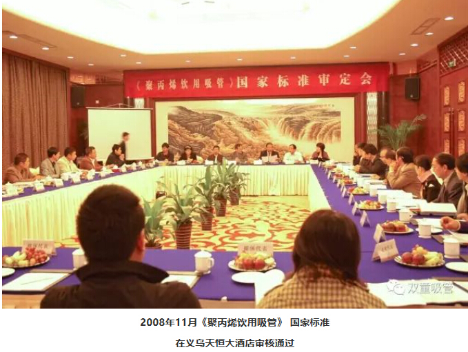 2008年11月,《聚丙烯飲用吸管》 國家標準審定會(huì )在義烏天恒大酒店召開(kāi)。會(huì )上審核通過(guò)了該項國家標準,成為當時(shí)金華地區第一件完全意義上的國家標準。