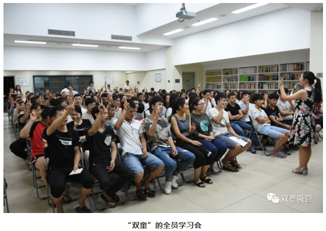 2010年,樓仲平在摸索自媒體運營(yíng)過(guò)程當中,不斷地培養團隊來(lái)運營(yíng)自媒體項目。在此過(guò)程中,樓仲平把來(lái)自浙江傳媒學(xué)院畢業(yè)的吸管妞周上帶在身邊培養,每天一起運營(yíng)自媒體傳播,慢慢灌輸“雙童”企業(yè)文化和自媒體運營(yíng)積累的經(jīng)驗,并培養“吸管妞”的團隊意識和管理能力,從而開(kāi)始招兵買(mǎi)馬組建文宣團隊。