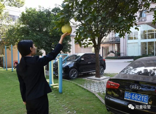 原來(lái),為了“雙童”的生態(tài)和美觀(guān),公司明確柚子是觀(guān)賞性水果,每棵柚子樹(shù)上都有“觀(guān)賞水果,請勿摘食”的字樣,提醒和引導員工不要摘食觀(guān)賞水果。