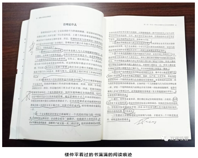 其實(shí),樓仲平早在很多年前,就已經(jīng)開(kāi)始閱讀現代管理學(xué)之父德魯克的書(shū)籍,他的書(shū)架上擺滿(mǎn)了德魯克的管理學(xué)著(zhù)作。這些書(shū)籍經(jīng)過(guò)他反復閱讀,已經(jīng)畫(huà)滿(mǎn)了圈圈點(diǎn)點(diǎn)的筆記。