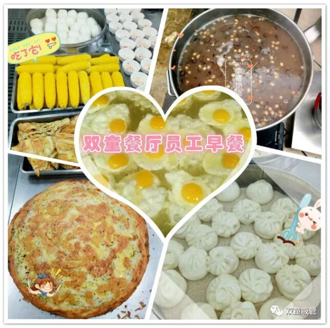 “雙童”的正餐為三菜一湯、葷素搭配,做到每周不重樣。為了讓不同時(shí)間下班的員工都能夠吃到熱乎乎的飯菜,大廚要計算著(zhù)員工的下班時(shí)間,吃一鍋炒一鍋,盡量讓員工吃到口感最佳的菜肴。